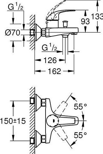 BauCurve Смеситель для ванны настенный монтаж (замена 32806000), хром 23599000