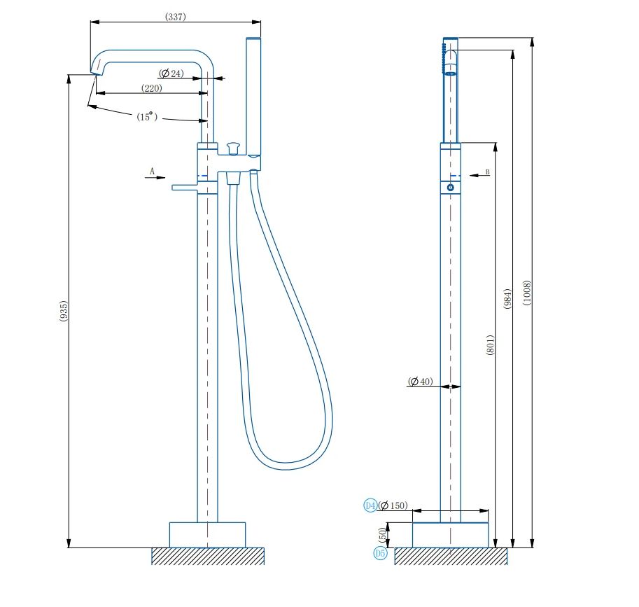 Напольный смеситель для ванны с душем ARROW, серый N11YG609GG