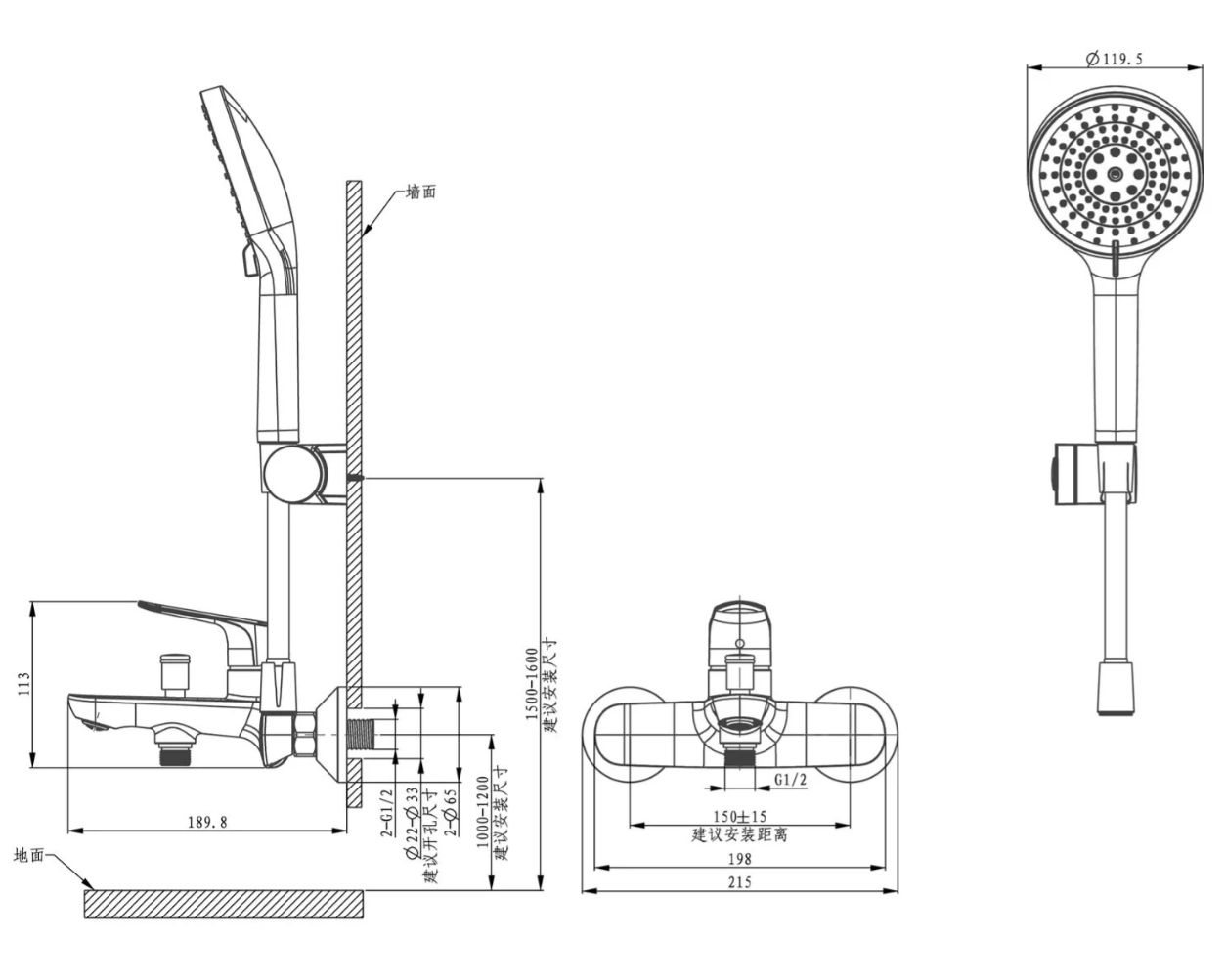 Смеситель для ванны ARROW AG3609MB с душем, черный матовый