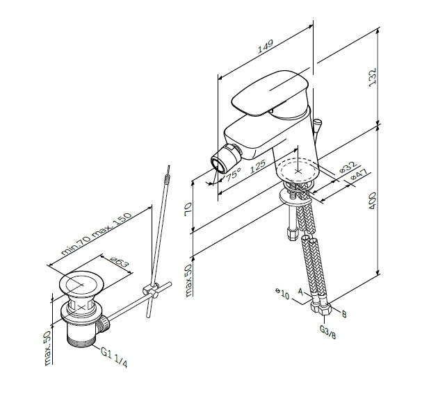 F71A83100 Spirit V2.1 смеситель д/биде с д/к, хром, шт.