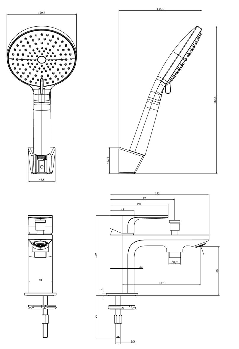 АЛЬФА смеситель врезной на борт ванны на 1 отв., матовый черный AQ1944MB