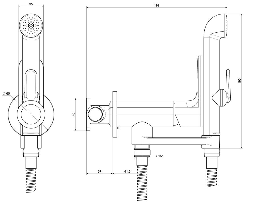 АЛЬФА комплект для гигиенического душа встроенный (смеситель + гигиеническая лейка + шланг) AQ1919CR