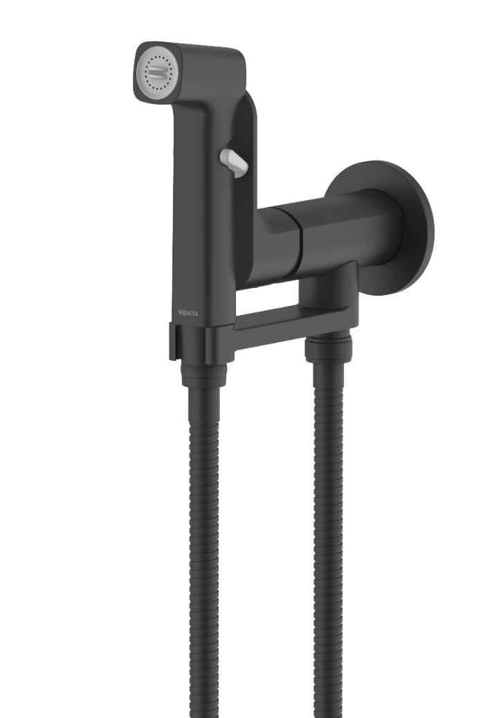 АЛЬФА комплект для гигиенического душа встроенный (смеситель + гигиеническая лейка + шланг), матовый черный AQ1919MB