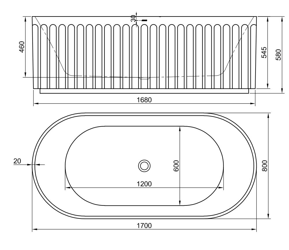 AH17001TQ Акриловая ванна 170*80 см, отдельностоящая Arrow с ножками, со сливом-переливом, белый