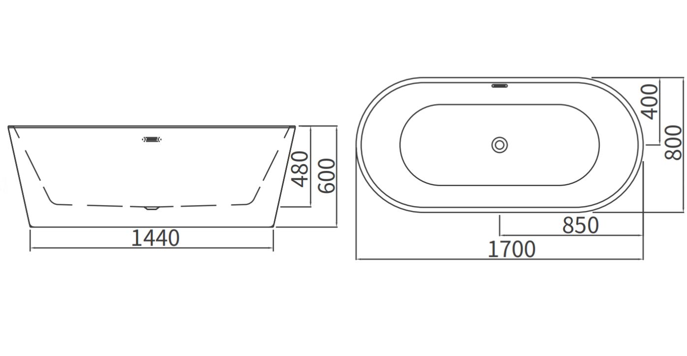 Акриловая ванна ARROW A1702TQU1, 170*80 см, отдельностоящая, со сливом-переливом, белый