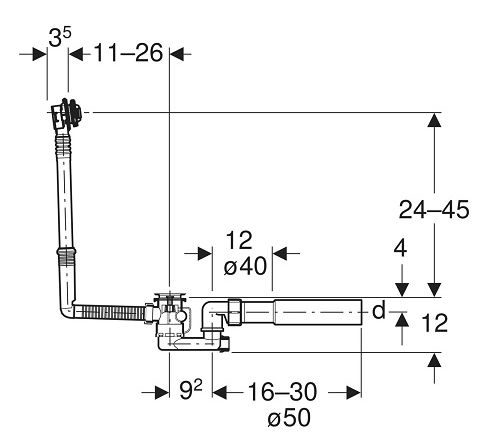Слив-перелив Geberit, d52, длина 26 см, с декоративным комплектом: Глянцевый хром 150.520.21.6