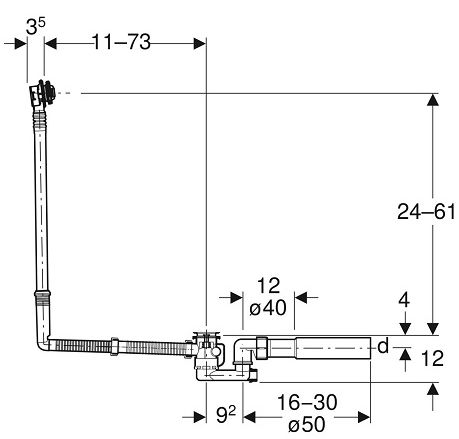 Слив-перелив Geberit, d52, длина 73 см, с декоративным комплектом: Глянцевый хром 150.525.21.6