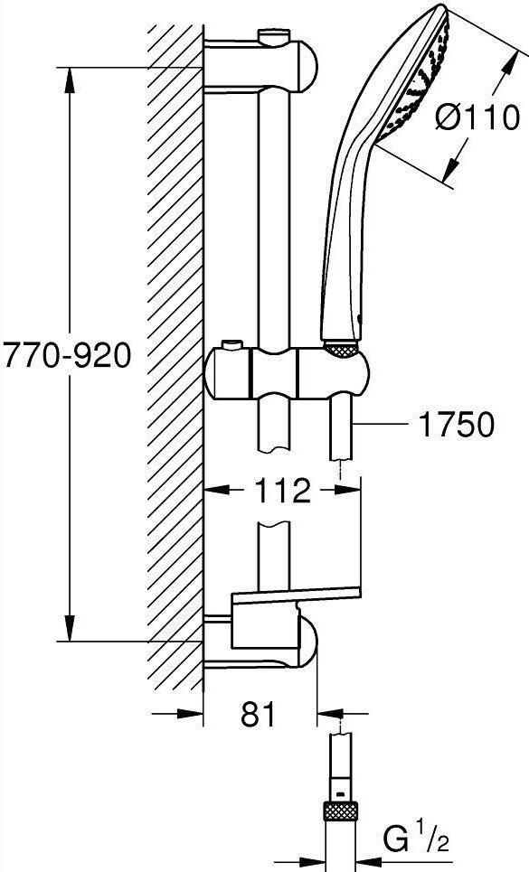 Euphoria 110 Душевой гарнитур I, душевая штанга 900 мм, шланг 1750 мм, полочка, хром 27267001