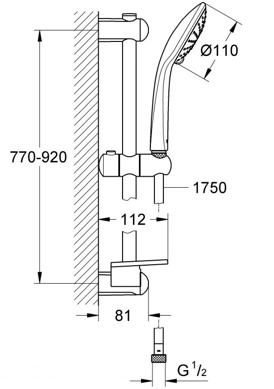Euphoria Duo 110 Душевой гарнитур II, душевая штанга 900 мм, шланг 1750 мм, полочка, хром 27225001