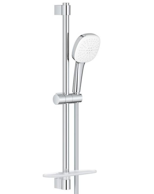 Tempesta Cube 110 Душевой гарнитур, 2 реж струи, душ штанга 600 мм, шланг 1750 мм, полочка, max расход 7,4 л/мин, хром 26907003