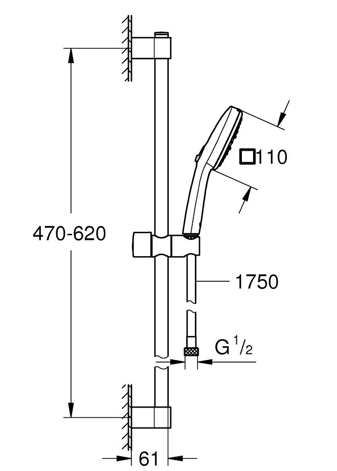 Tempesta Cube 110 Душевой гарнитур, 3 режима струи, душевая штанга 600 мм, шланг 1750 мм, 8.4 л/мин, хром 27579003