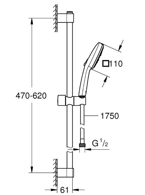 Tempesta Cube 110 Душевой гарнитур, 3 режима струи, душевая штанга 600 мм, шланг 1750 мм, хром 27786002