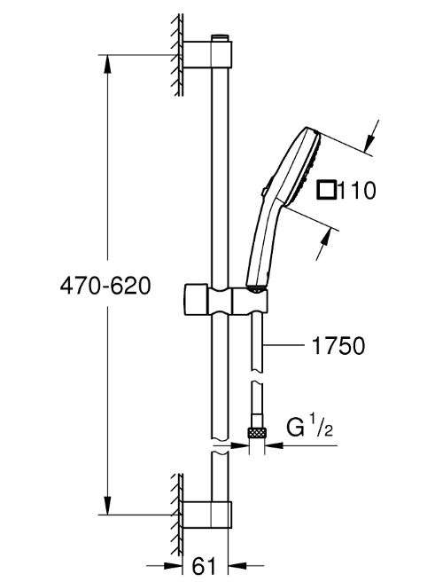 Tempesta Cube 110 Душевой гарнитур, 3 режима струи, душевая штанга 600 мм, шланг 1750 мм, хром 27786003