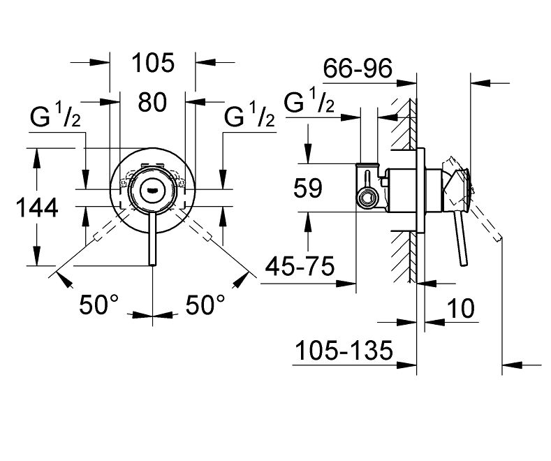 BauClassic Готовый комплект для гиг душа: встр смеситель (29048000), гиг душ (26506000) со шлангом (28105001) и держ, хром (замена арт. 124434)