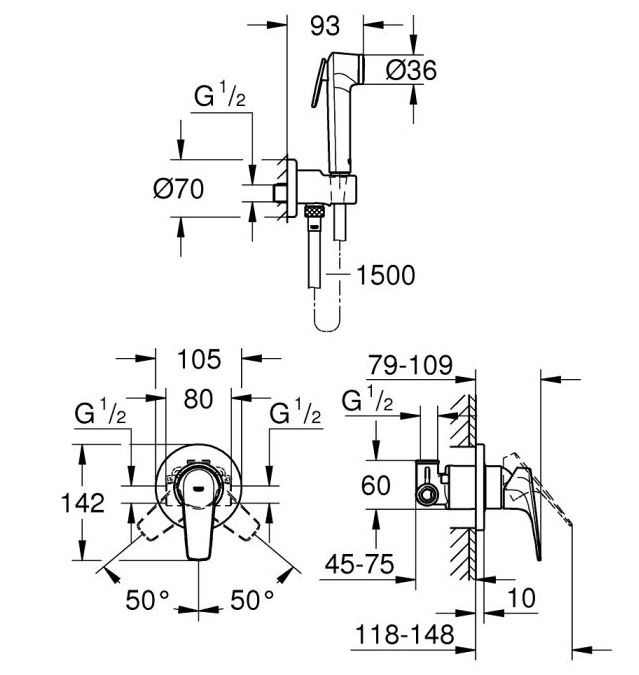 BauFlow Готовый комплект для гигиен душа: встраиваемый смеситель, гигиен душ со шлангом и держателем, хром 29328000