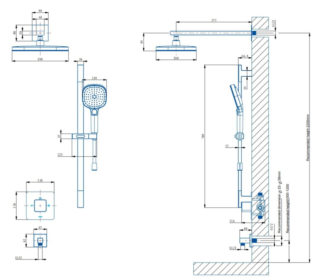 Душевой комплект ARROW AG372002MB-1 с ВНУТРЕННЕЙ ЧАСТЬЮ, с термостатом,черный матовый