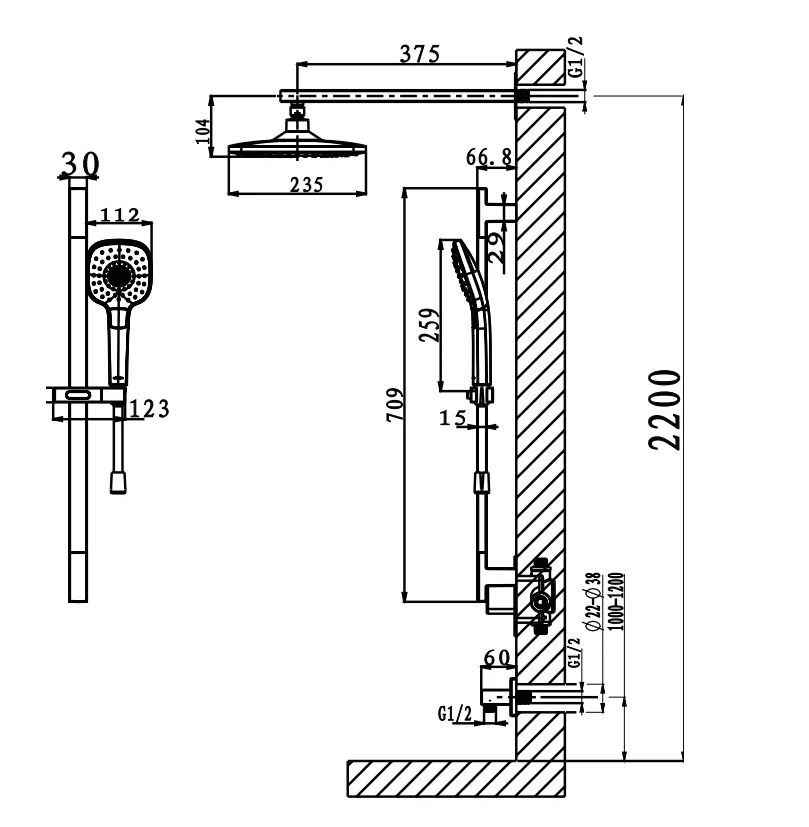 Душевая стойка ARROW AG3318CP, 226 мм с термостатом, хром