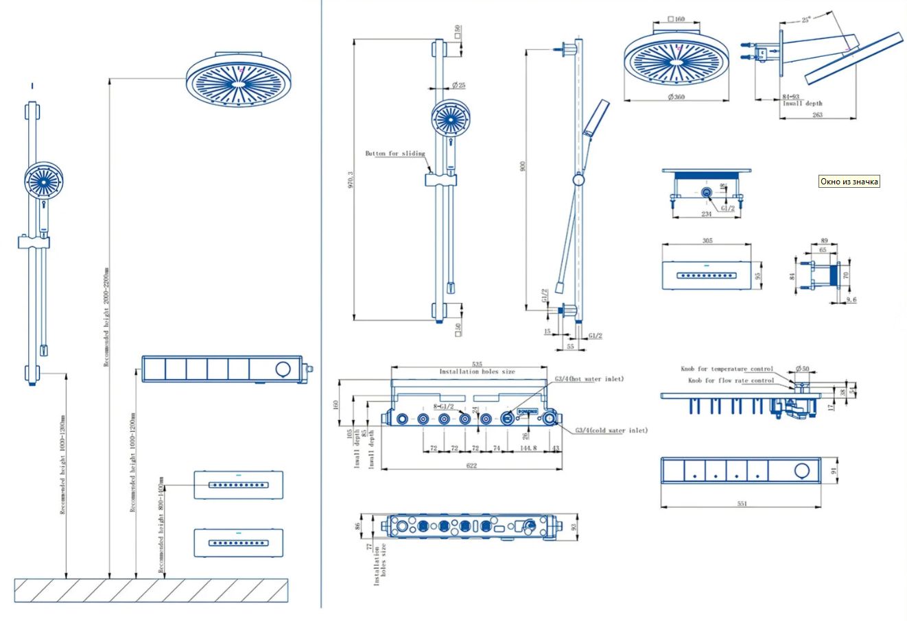 Душевой комплект ARROW ARQ14H889CG с ВНУТРЕННЕЙ ЧАСТЬЮ, с термостатом, брашированное золото