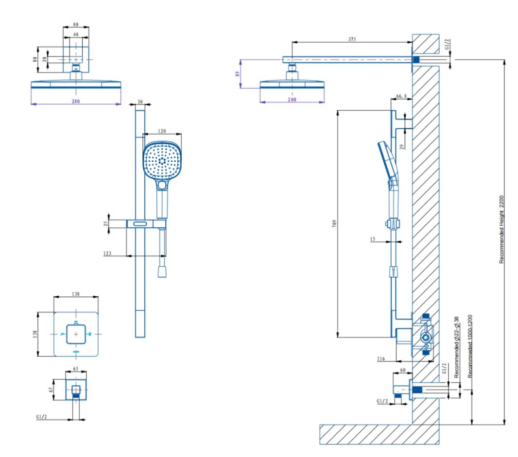 Душевой комплект Arrow встраиваемый, серый AG372002GGP-1