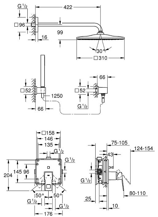 Eurocube Набор для душа: смеситель, SmartBox, верх. душ RSH Mono 310 Cube c душ.кронш 422 мм, , ручн. душ Euphoria Cube Stick, шланг 1500 мм 25238000