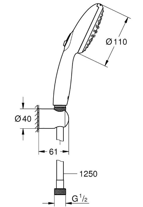 Tempesta 110 Душевой набор 2 режима струи, 13,5 л/мин (круг. ручной душ, настен держатель, шланг 1250 мм), хром 27799003