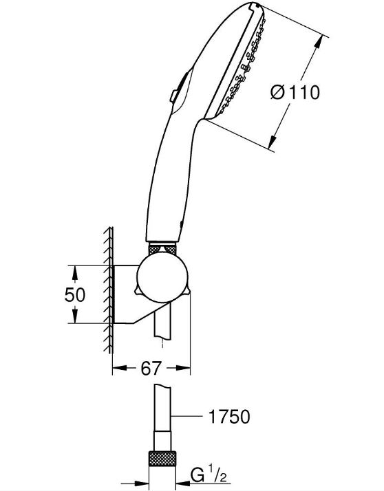 Tempesta 110 Душевой набор 2 режима струи, настенный держатель, шланг 1750 мм, 5,6 л/мин, хром 2760130E