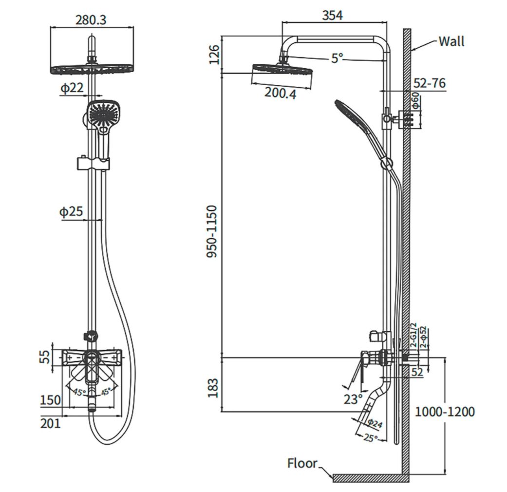 Душевой комплект ARROW AG372002MB-1 с ВНУТРЕННЕЙ ЧАСТЬЮ, с термостатом,черный матовый