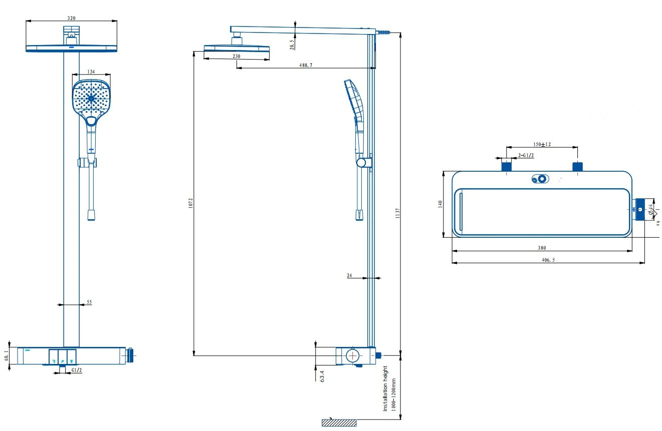 Душевая стойка ARROW AMG13GH872U1CP с термостатом, хром