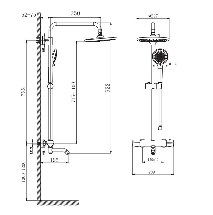 Душевая стойка Arrow AMG13SH848U2BC, с термостатом, черный матовый
