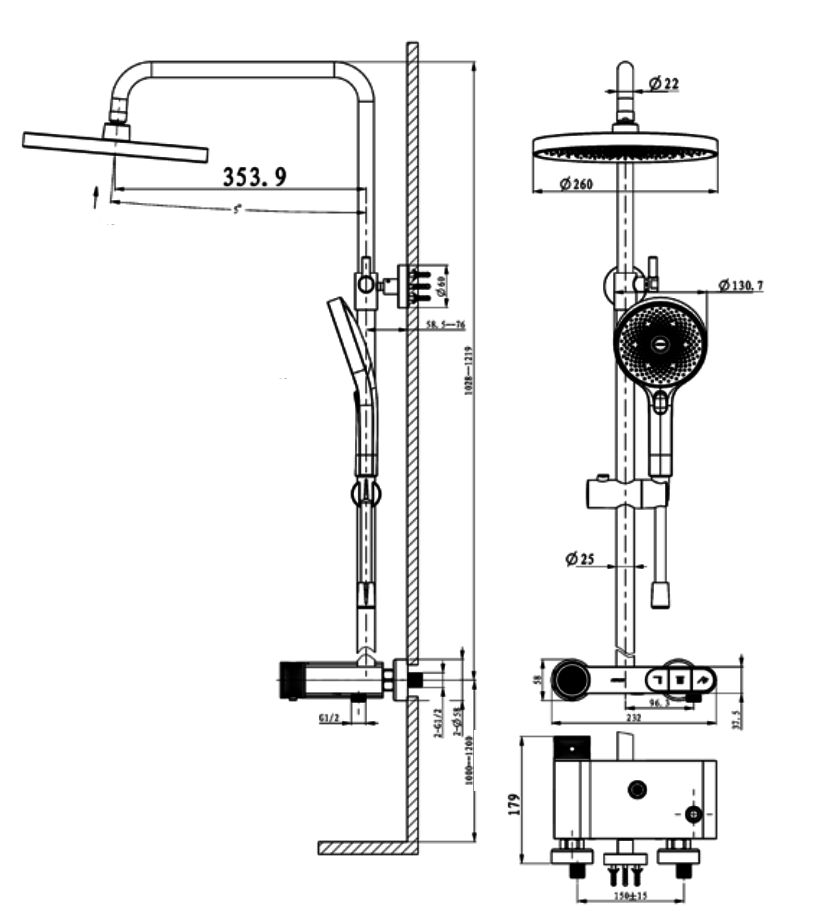 Душевая стойка ARROW AMG13SH868ACP, хром