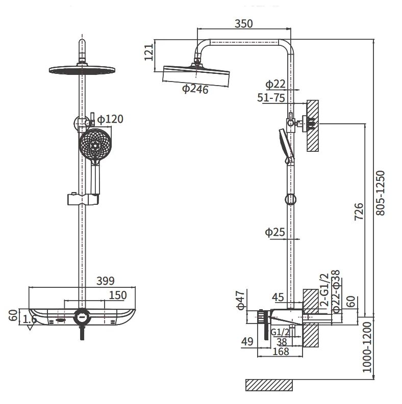 Душевая стойка Arrow с термостатом, черный матовый AD3336SHMB