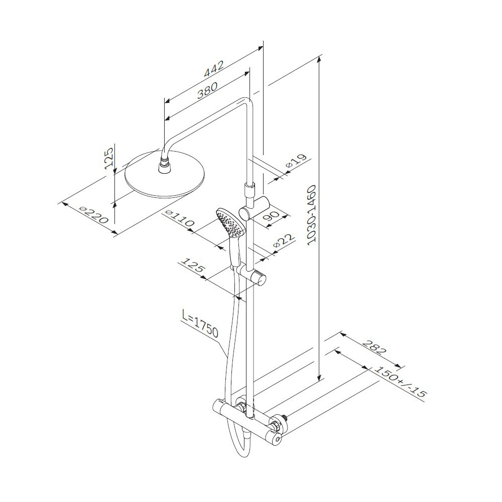 F0790410 Gem душ.система, набор: смеситель д/душа с термостатом, верхн. душ d 220 мм, ручн.душ 1 ф-ц