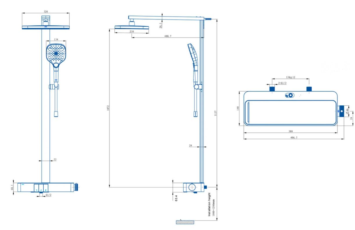 Душевая система Arrow AMG13GH872GG, 320*230 мм с термостатом, серый