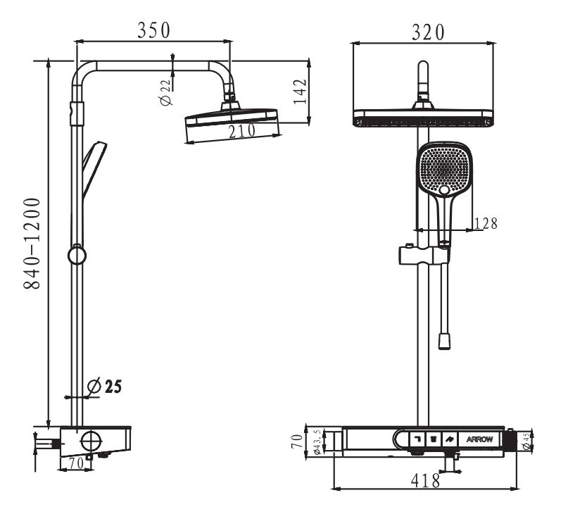 Душевая система Arrow AMG13SH855A , 320*210 мм с термостатом, хром