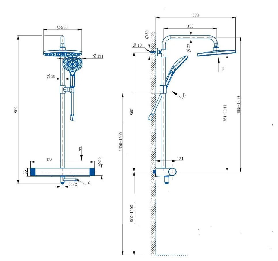 Душевая система с термостатом ARROW, хром F6H9119CP