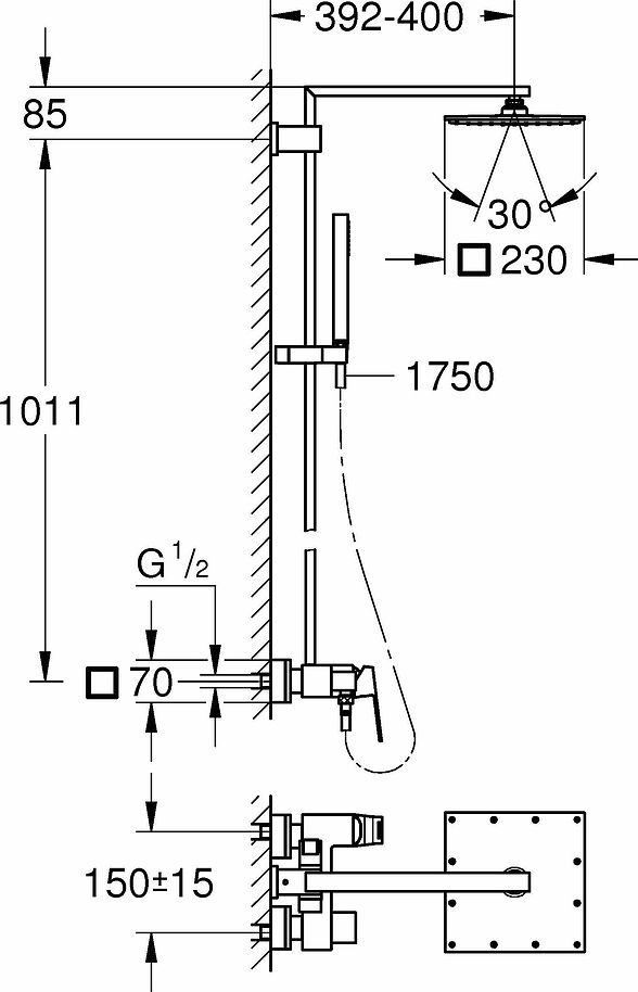 Euphoria Cube 230 Душевая система со смесителем, хром 23147001