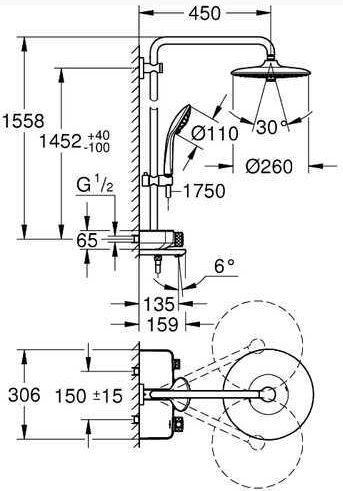 Euphoria SmartControl 260 MONO Душевая система с термостатом для ванны, хром 26510000