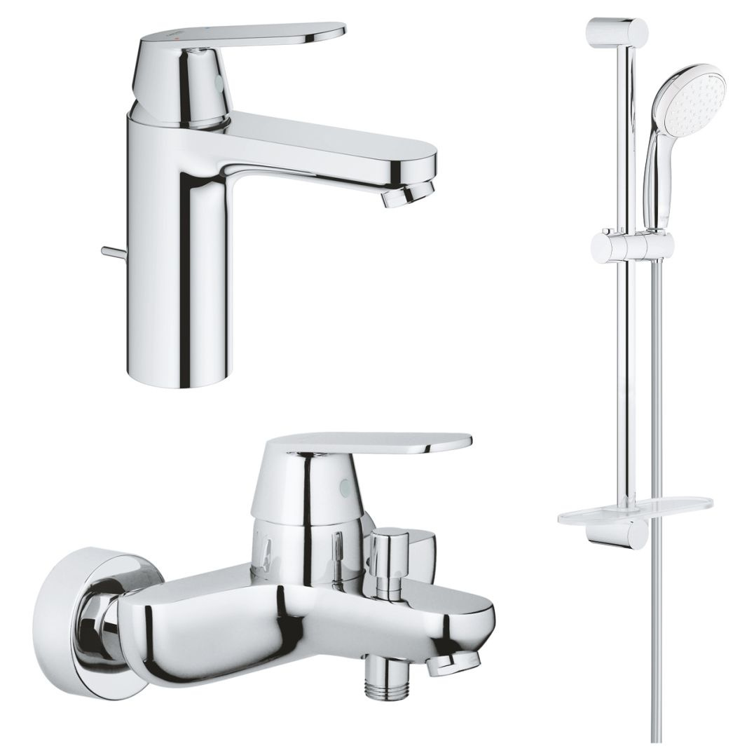 Набор для ванны Eurosmart Cosmo: Смеситель для рак (23325000), смеситель для ванны (32831000), Tempesta 100 II с полкой (27926001), хром