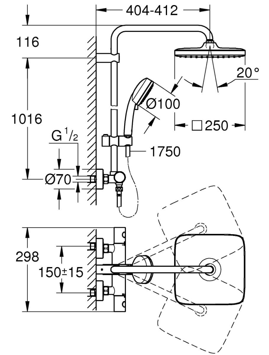Tempesta Cosmopolitan 250 Cube Душевая система поворотная с термостатом, хром 26689000
