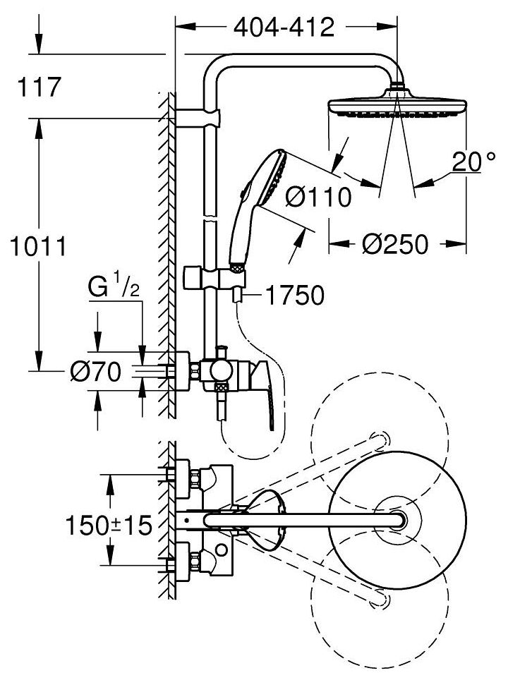 Tempesta System 250 Душевая система с однорычажным смесителем настенного монтажа, хром 26673001