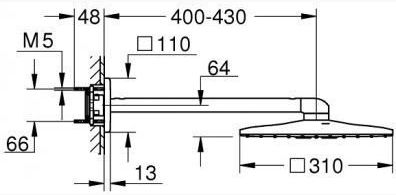 Rainshower 310 SmartActive Cube Верхний душ с душевым кронштейном 430 мм, 2 режима струи, хром 26479000