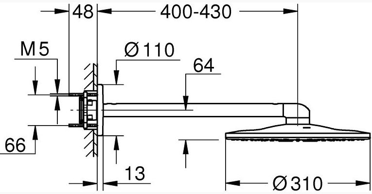 Rainshower 310 SmartActive Верхний душ с душевым кронштейном 430 мм, 2 режима струи, хром 26475000