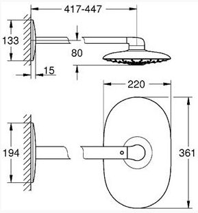 Rainshower 360 DUO Верхний душ с кронштейном 450 мм, II режима, хром 26254000