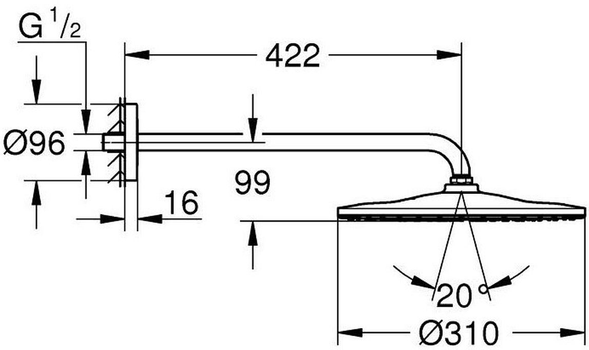 Rainshower Mono 310 верхний душ с душевым кронштейном, 1 режим струи, фантомный чёрный 22121KF0