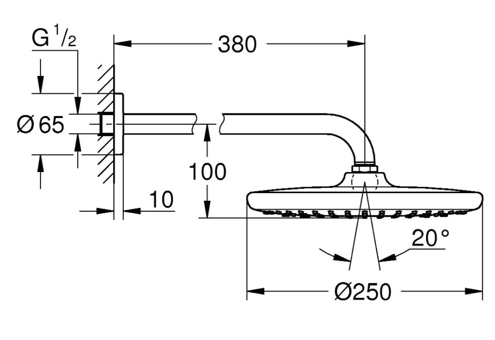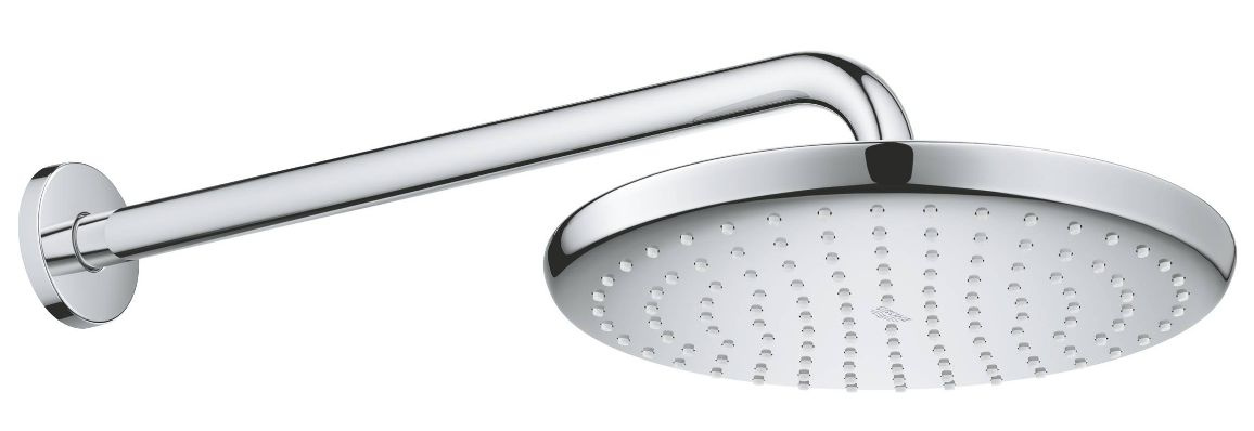 Tempesta 250 Верхний душ, круглый (низ-хром, верх-белый) + Душевой кронштейн 380 мм, хром 26668000